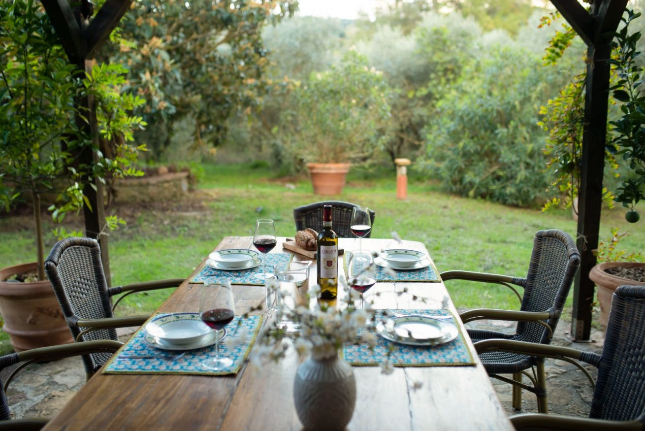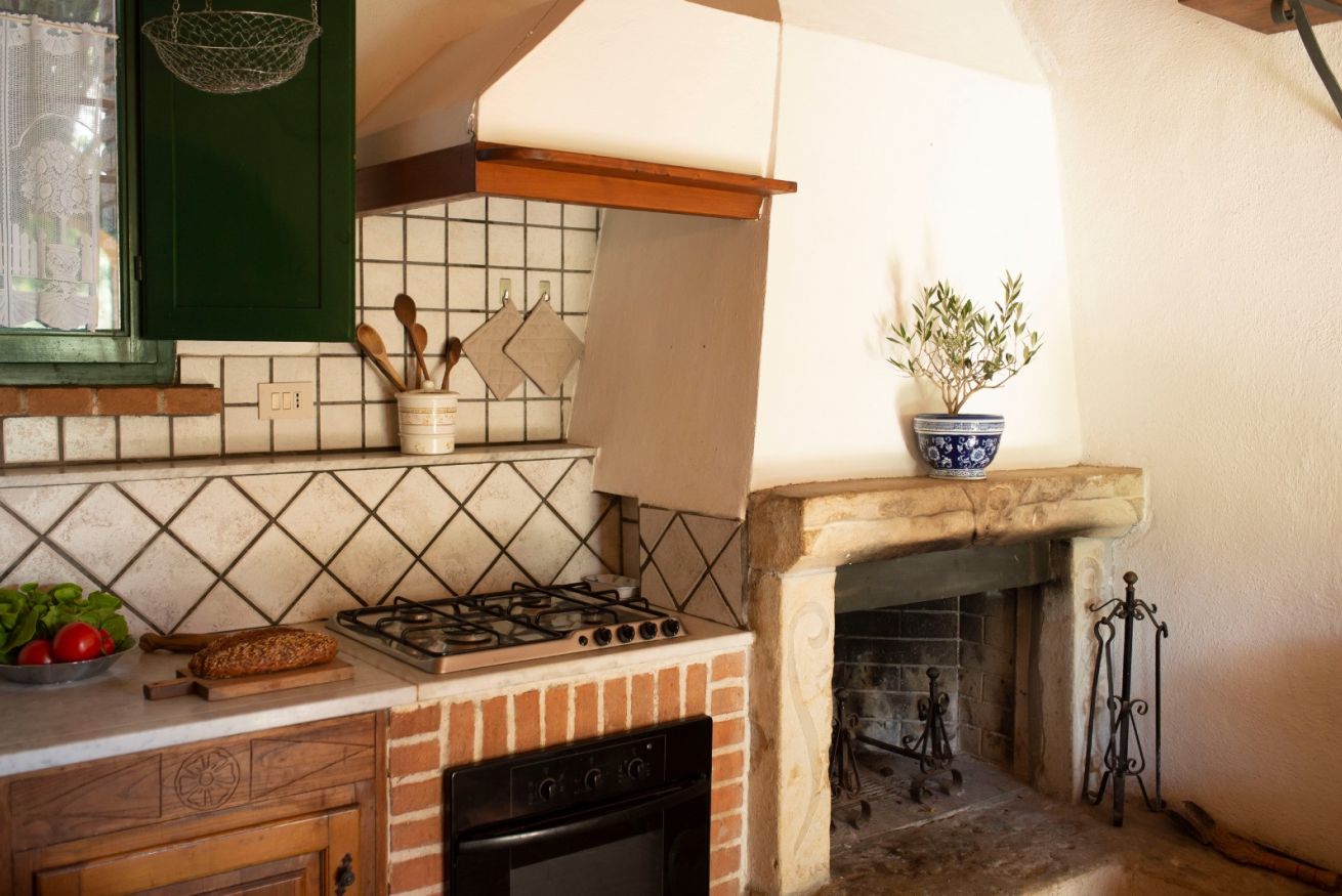 All’esterno, il casale si apre su un grande parco privato circondato da ulivi secolari, dove passeggiare, leggere o semplicemente rilassarsi. Una veranda attrezzata invita a pranzi e cene all’aperto, mentre il forno a legna permette di preparare pane e pizza come una volta.