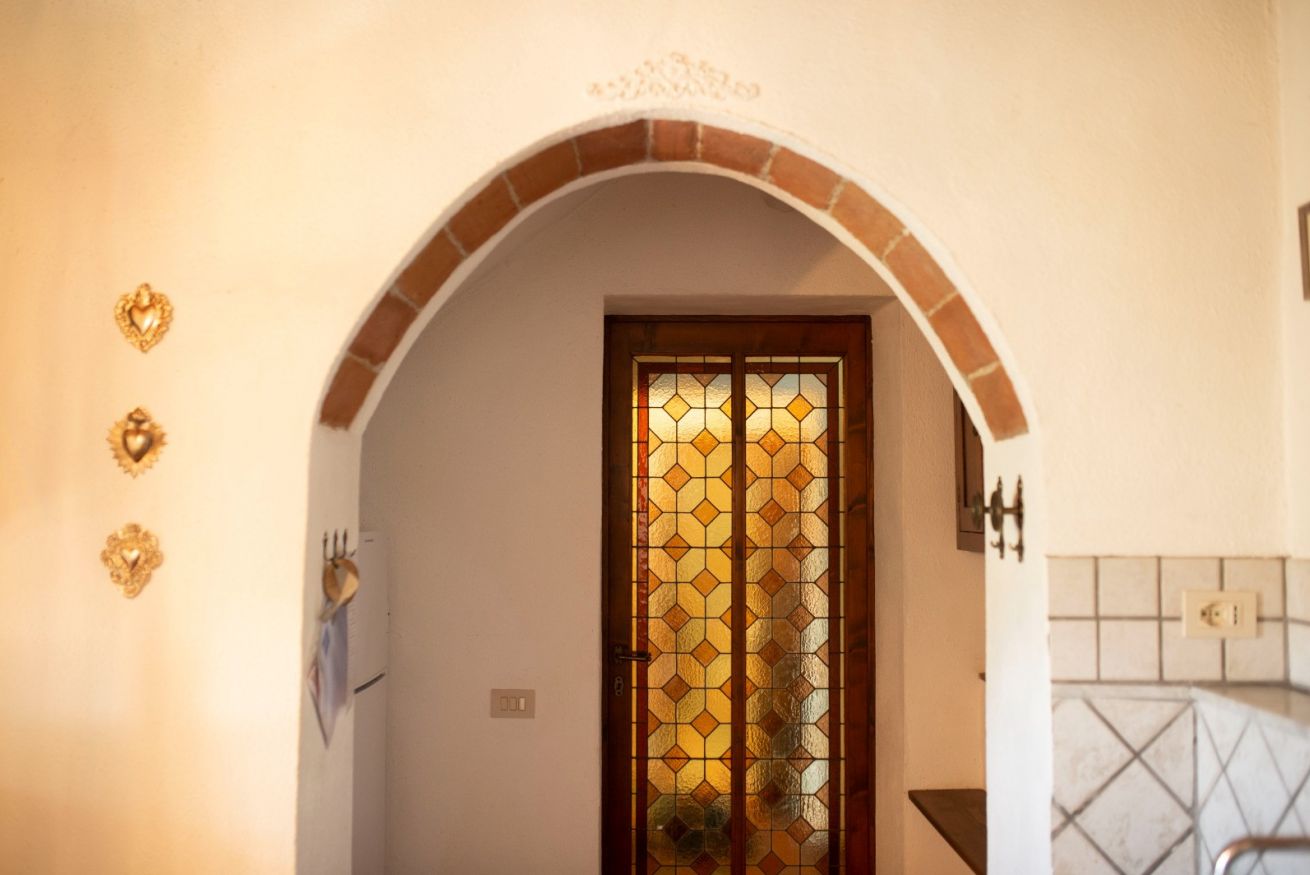 Al piano terra si trovano una camera matrimoniale, la cucina e un bagno a servizio degli ospiti. Al primo piano si sviluppano altre tre camere – due matrimoniali e una doppia – con un secondo bagno. Una delle camere al piano superiore vanta un piccolo camino, ideale per momenti di relax intimi e suggestivi.
